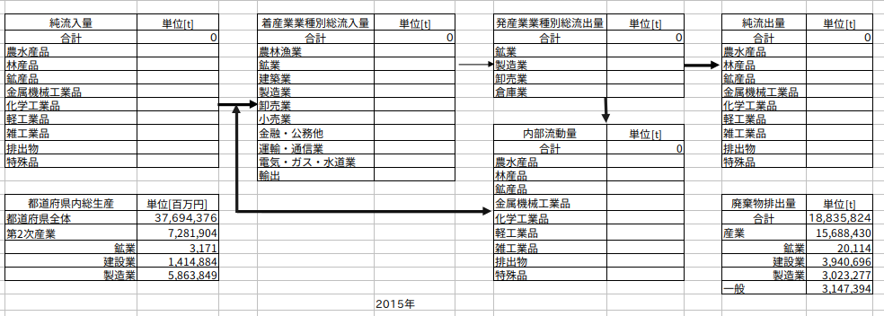 都道府県内総生産と廃棄物排出量については、事前に値を入力してあります。
