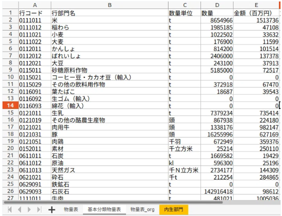 今回は、産業連関物量表(以下、「物量表」)のデータを整理していきます。