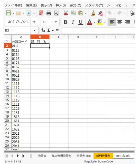 分類コード一覧は、ワークシート「bunruiCode」とします。