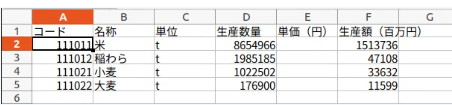 wSheet.RANGE("F1").VALUE = "生産額(百万円)"